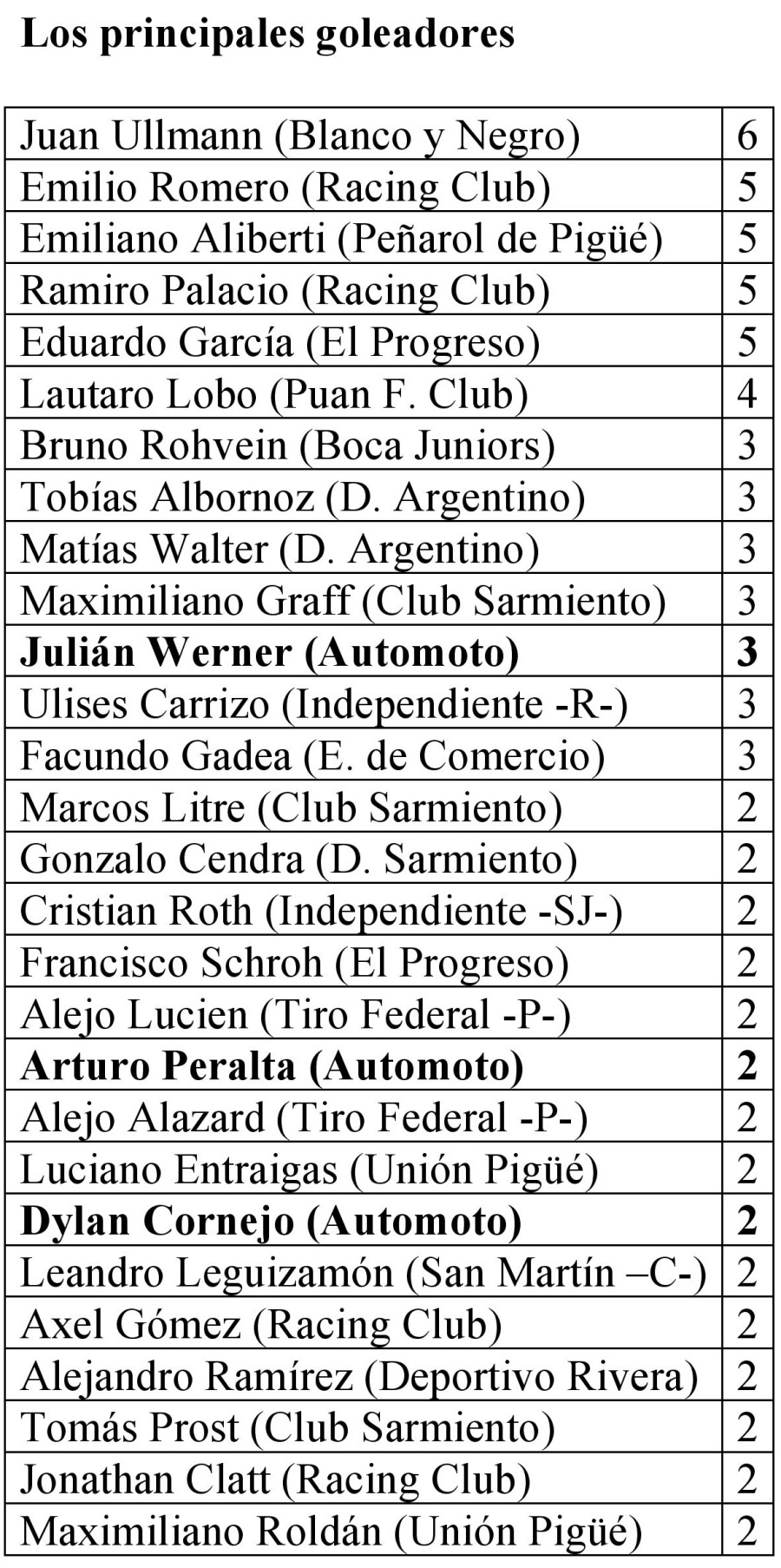 - Automoto: 26 triunfos y 76 goles.