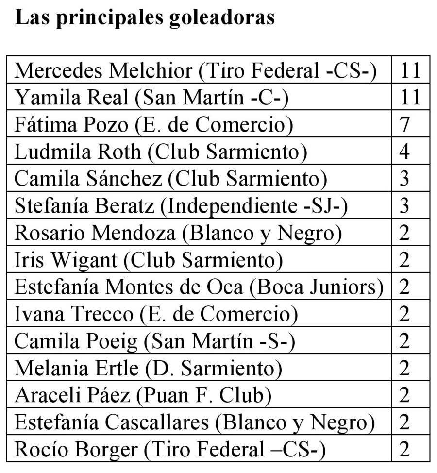 La programación entregó un hecho histórico: con sus cinco goles en el categórico 7-0 sobre San Martín (ST), la jugadora Mercedes Melchior (Tiro Federal de Coronel Suárez) se convirtió en la primera en alcanzar las 100 conquistas en la Liga.
