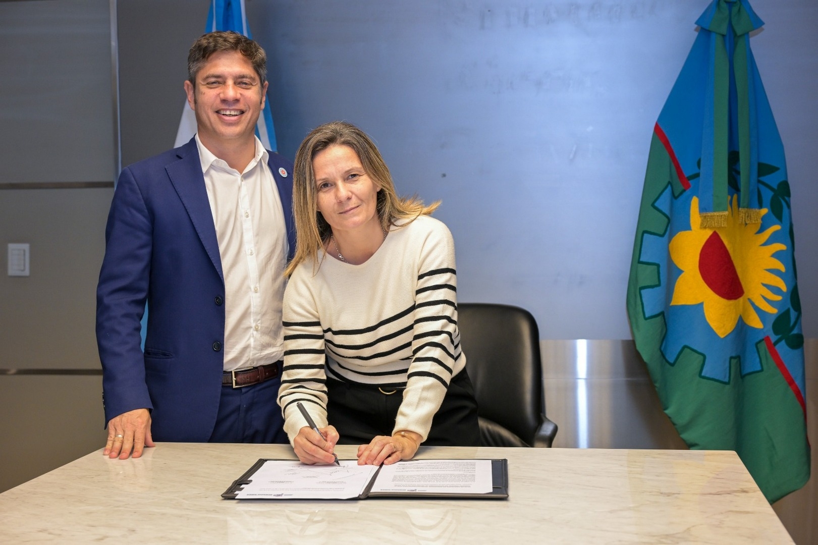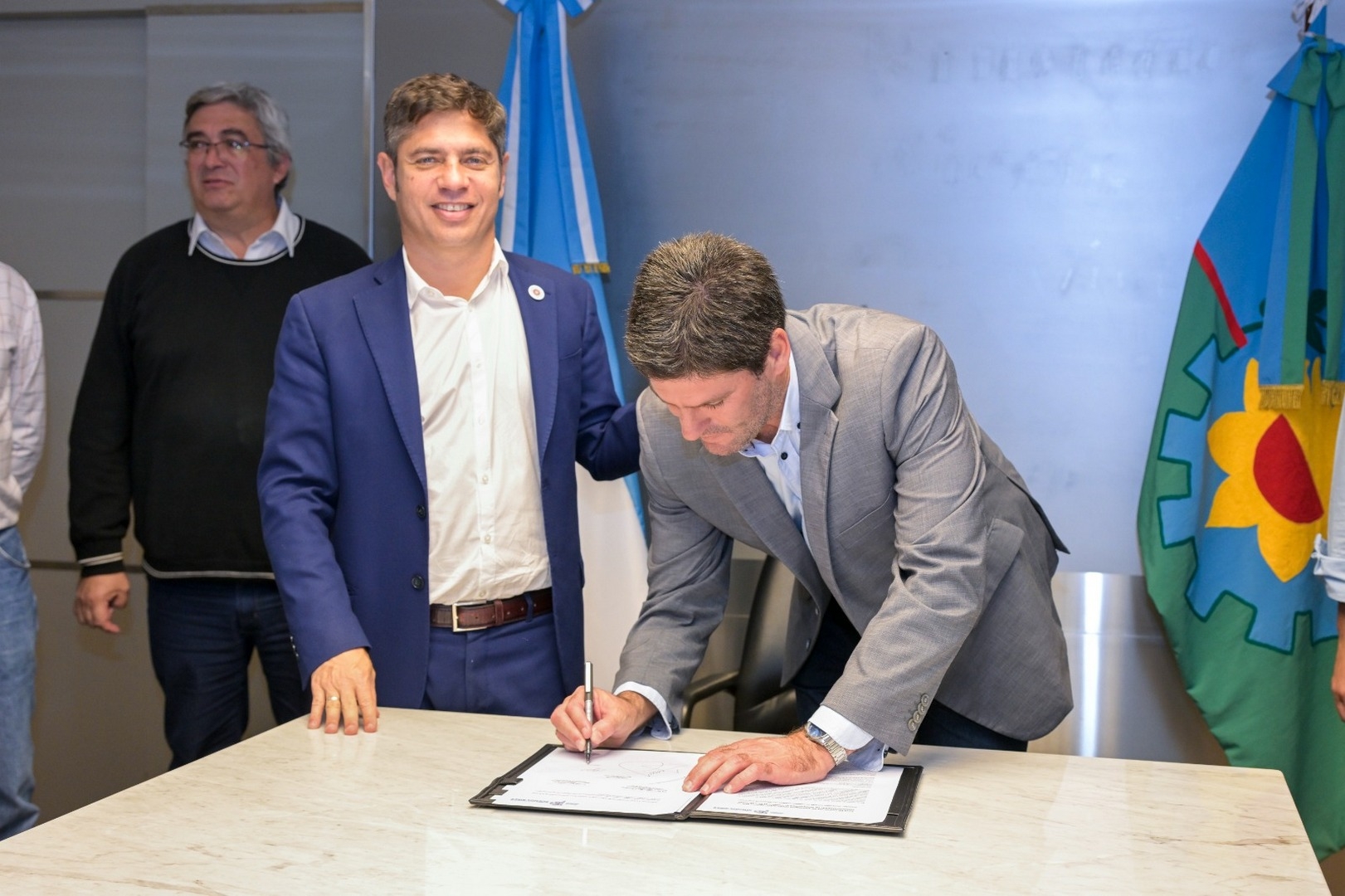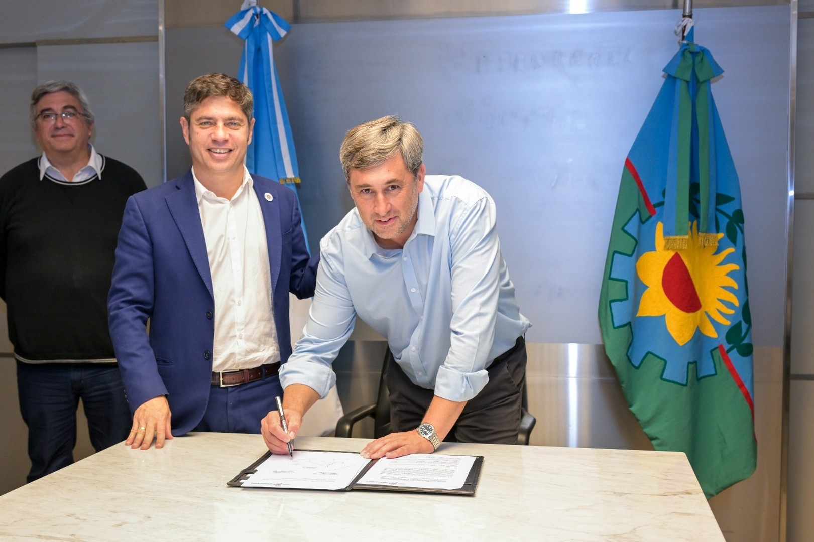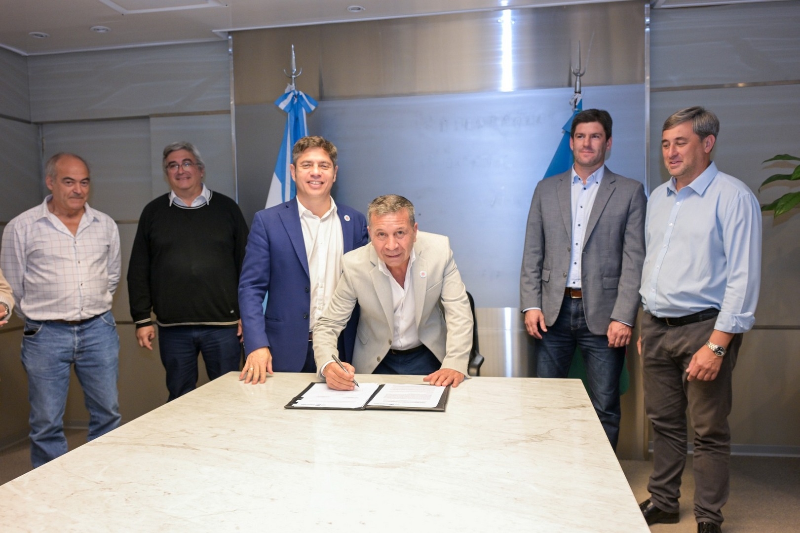 El gobernador Axel Kicillof participó de la firma de convenios para la elaboración de planes directores locales de caminos rurales junto al ministro de Desarrollo Agrario, Javier Rodríguez; la jefa de Asesores, Cristina Álvarez Rodríguez; y los intendentes Gustavo Cocconi (Tapalqué), Javier Gastón (Chascomús), Emilio Cordonnier (Ayacucho), Alfredo Fisher (Laprida), María José Gentile (9 de Julio), María Laura Rodríguez (Bolívar), Carlos Humberto Rocha (General Guido) y Luis Ignacio Pugnaloni (Hipólito Yrigoyen), en un paso clave para abordar uno de los principales desafíos estructurales de la provincia: la conectividad rural.
