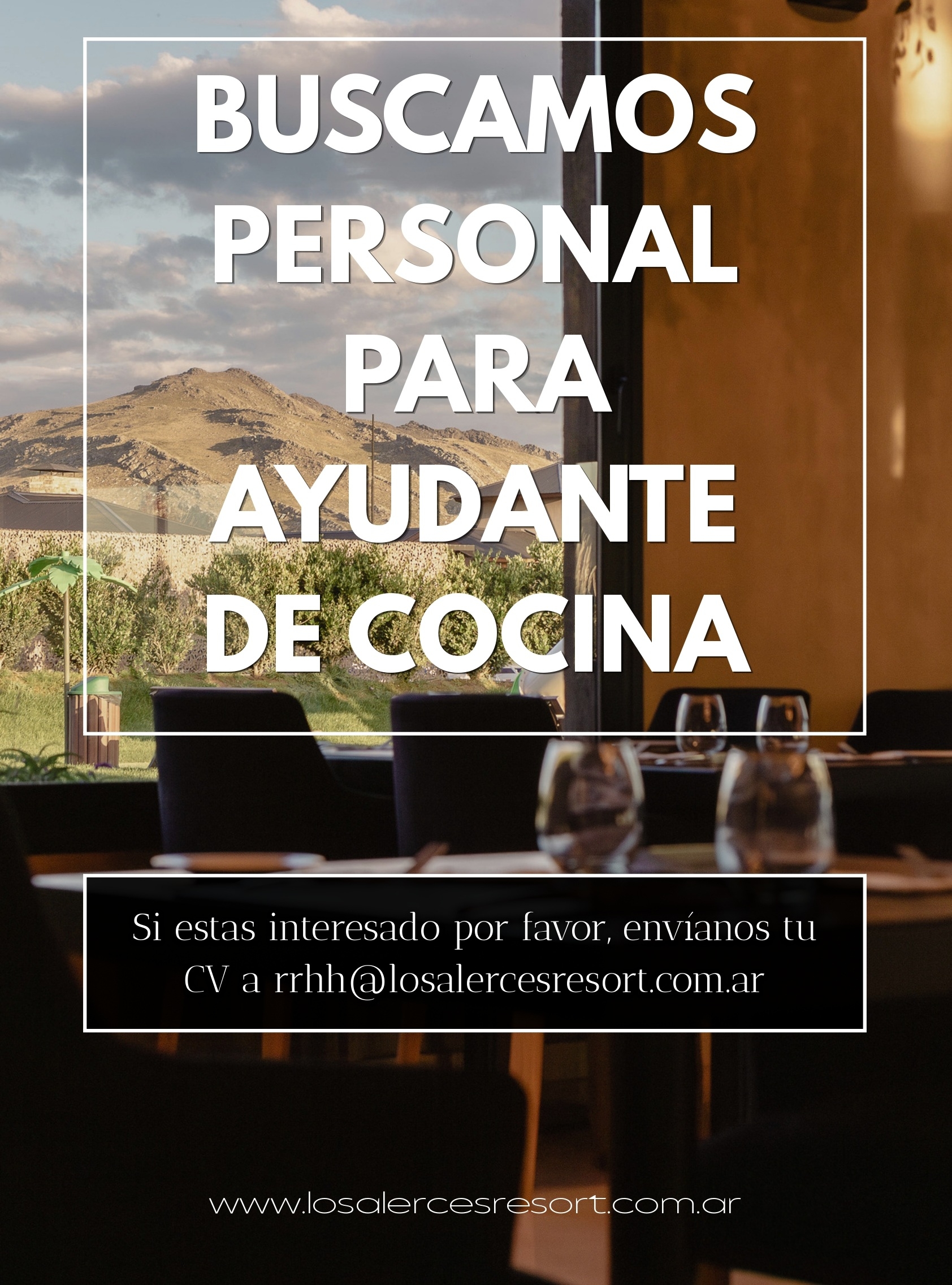 Los Alerces Resort busca ayudante de cocina