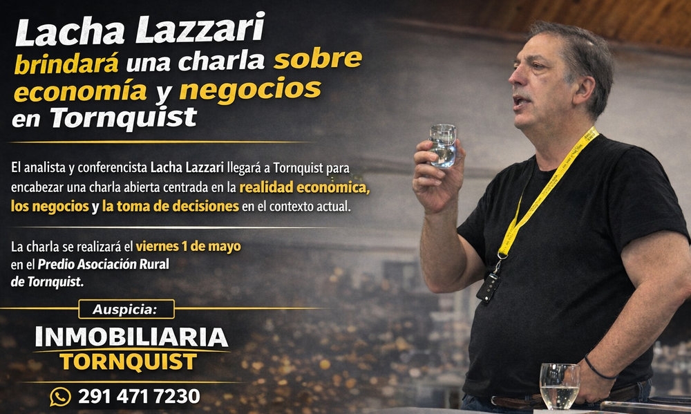El analista y conferencista Lacha Lazzari llegará a Tornquist para encabezar una charla abierta centrada en la realidad económica, los negocios y la toma de decisiones en el contexto actual.