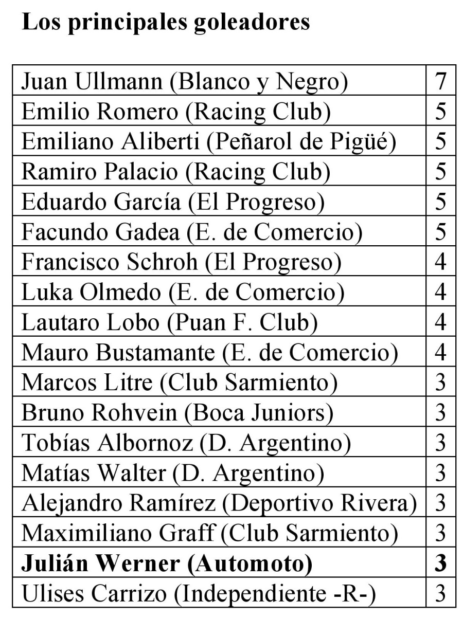 Por su parte, en Pigüé, Automoto no pudo sostener su racha positiva y perdió el invicto al caer por 1 a 0 frente al último campeón, Club Sarmiento. El único gol del encuentro lo convirtió Marcos Litre a los 13 minutos del segundo tiempo, en un partido cerrado donde el local supo aprovechar su momento para quedarse con los tres puntos.