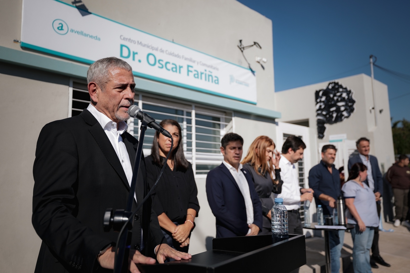 El gobernador de la provincia de Buenos Aires, Axel Kicillof, inauguró este jueves un nuevo Centro Municipal de Cuidado Familiar y Comunitario en Avellaneda, junto al ministro de Salud, Nicolás Kreplak; el intendente local, Jorge Ferraresi; y el doctor Oscar Fariña.