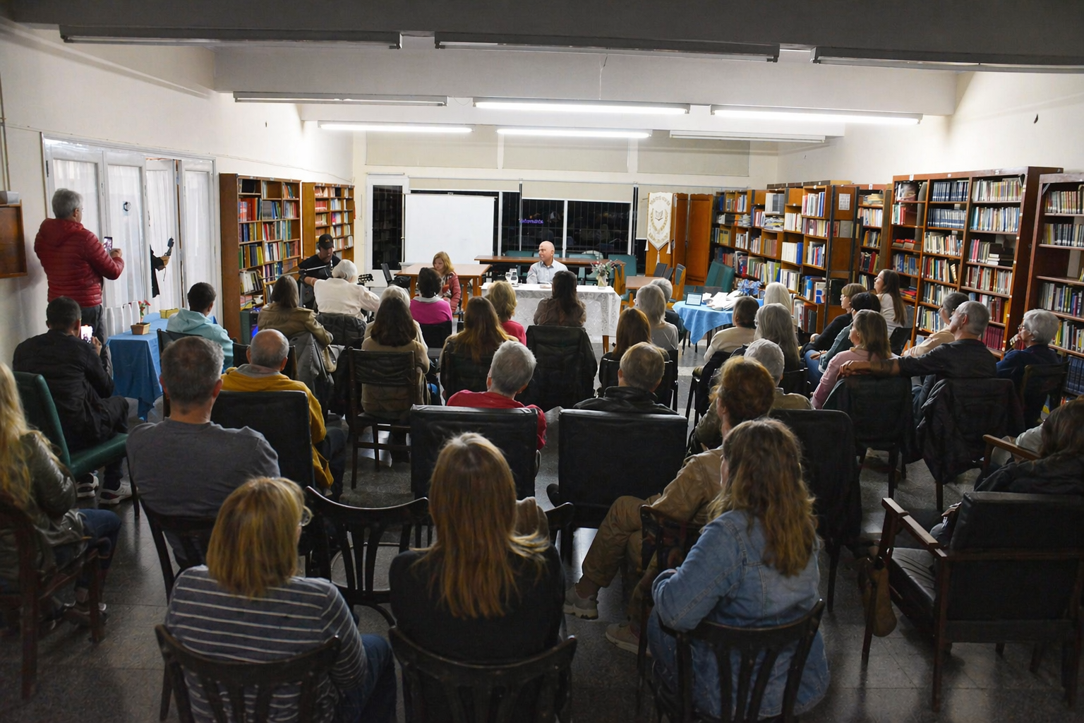 La actividad contó con la presencia de una gran cantidad de vecinos que acompañaron la presentación, en un encuentro íntimo y cargado de emoción. La apertura estuvo a cargo de Mariano del Río, quien interpretó dos canciones —una en inglés y otra en castellano— aportando un clima especial a la velada.