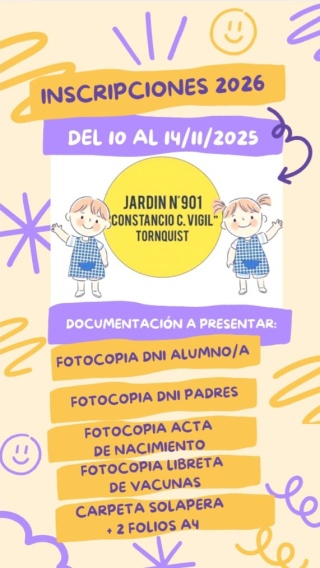 El Jardín de Infantes N°901 abre inscripción para ciclo lectivo 2026