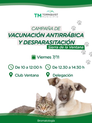 Nueva jornada de vacunación antirrábica y desparasitación en Sierra de la Ventana