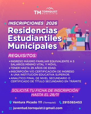Inscripciones 2026 a las residencias estudiantiles municipales